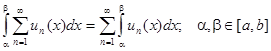 Равномерно сходящийся на отрезке [a,b] ряд с непрерывными членами можно почленно интегрировать на этом отрезке, т.е. ряд, составленный из интегралов от его членов по отрезку [a,b] , сходится к интегралу от суммы ряда по этому отрезку.