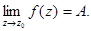 имеет предел в точке z0, равный числу А = a + ib, если