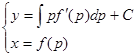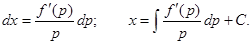 Для дифференциального уравнения вида x = f(y’) с помощью той же самой подстановки и аналогичных рассуждений получаем результат: