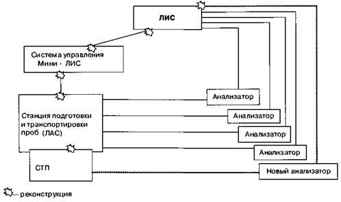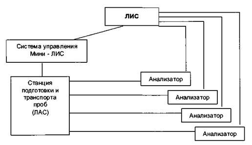 Дальнейшее увеличение эффективности работы лабораторий связано с интеграцией в единый комплекс анализаторов, информационной системы лаборатории, системы управления анализаторами, системы автоматической регистрации запросов и направлений на выполнение анализов, системы контроля работы лаборатории в целом и системы транспортировки биопроб в лаборатории. Такой комплекс получил название Система Автоматизации Лаборатории (ЛАС).