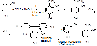 2) С резорцином (+HCl / H2SO4) à(t) розовое, красное окрашивание.
