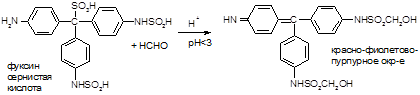Реакция идет мгновенно с формальдегидом. Кетоны не реагируют. Реакция очень чувствительна, используется для обнаружения примеси альдегида в спиртах, эфирах и для к.о. альдегидов.