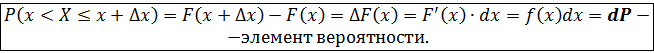 2). Вероятность попадания в элементарный интервал dx=(x+Δx)-x равна f(x)dx=dP.
