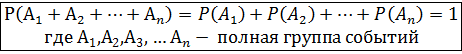 Следствие 1:Сумма вероятностей событий, которые образуют полную группу, равна 1: