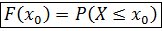 3).Функция распределения F(x0)– это вероятность того, что случайная величина X принимает значения меньшие или равные x0.