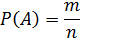 – это отношение числа исходов, благоприятствующих данному событию (m), к общему числу всех несовместных и равновозможных исходов данного опыта (n).