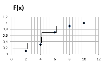 | F(x) | 0,1 | 0,3 | 0,7 | 0,9 | 1 |