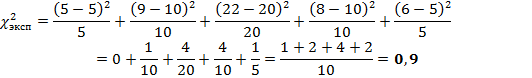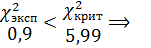 Из таблицы для  ν=5-3=2  и  ά=0,05 находим =5,99
