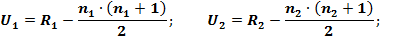 n1 –объём первой выборки,   n2 – объём второй выборки.