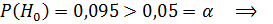 Если в результате проверки выяснилось, что Р(Н0)˃α , (т.е. ˃0,05), то мы вынуждены принять гипотезу Н0, так как Р(Н)<РД