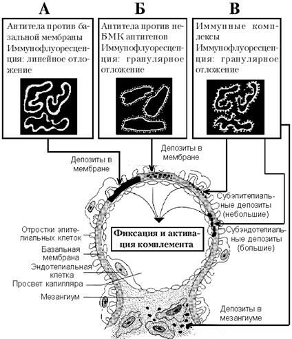 Иммунное повреждение наблюдается при большинстве гломерулярных заболеваний почек. Имеется два механизма такого повреждения: