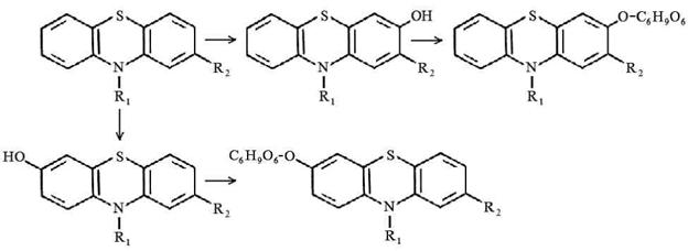 В основу этих методов положено измерение поглощения окрашенных продуктов реакции производных фенотиазина: