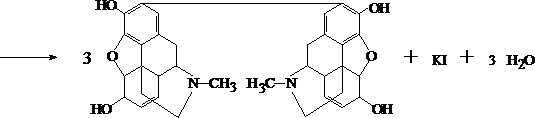 При взбалтывании раствора морфина, слабо подкисленного серной кислотой, с раствором йодноватой кислоты или с раствором калия йодата, не содержащим йодидов, выделяется свободный йод, который при взбалтывании с хлороформом переходит в хлороформный слой, окрашивая его в фиолетовый цвет.
