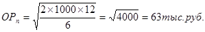 Пример: Годовой объем закупки товаров запланирован в размере 1 млн. руб. Сумма издержек обращения по размещению заказа и доставке в расчете на 1 поставляемую партию - 12 тыс.руб.