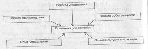 К факторам, определяющим принципы менеджмента, можно отнести и существующие на данный момент времени способы осуществления производственной деятельности, форма собственности на средства производства, а также социокультурные факторы.