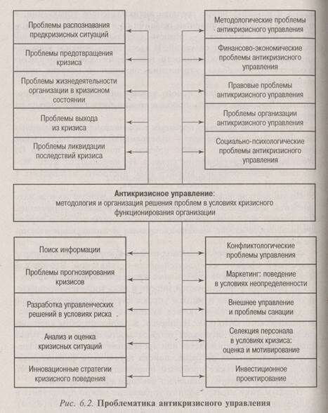 Нельзя упускать из структуры антикризисного управления и проблемы инвестирования антикризисных мер, маркетинга, а также проблемы банкротства и санации предприятий.
