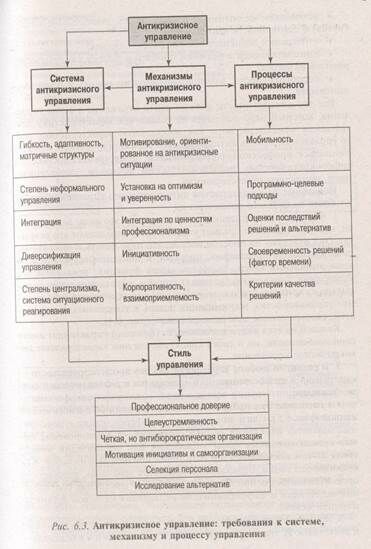 Антикризисное управление — это управление, в котором поставлено определенным образом предвидение опасности кризиса, анализ его симптомов, мер по снижению отрицательных последствий кризиса и использования его факторов для последующего развития.