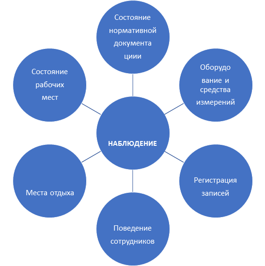 Наблюдение строится на ознакомлении, осмотре и изучении объекта обследования.