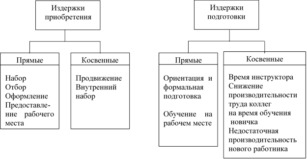 На всех этапах работы с персоналом имеют место определенные издержки. Отбор персонала для приема на работу, адаптация его на рабочем месте, расстановка и использование кадров, удержание работников в организации, управление уровнем текучести кадров, система оценки и вознаграждения – все это связано с расходами, которые прямо или косвенно влияют на стоимость работника для организации. Варьируя кадровую политику, можно получать более высокую эффективность и от использования кадров в организации как одного из видов ее ресурсов.