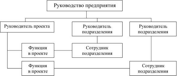 При матричной организации проектного менеджмента руководитель проекта является, по существу, одним из функциональных руководителей: ему функционально подчинены сотрудники других подразделений, остающиеся при этом в составе своих «родных» подразделений, начальники которых остаются их производственными руководителями. В связи с этим руководители этих производственных подразделений имеют право контролировать работу «своих» работников над проектом и получать информацию о ходе реализации проекта. Указания же руководителя проекта для участников работ являются функциональными, они ограничиваются рамками их профессиональной деятельности и не касаются производственных вопросов.