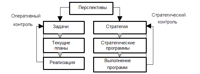 Таким образом, при стратегическом планировании добавляется еще одна петля управления (по стратегическим программам), экстраполяция заменяется развернутым стратегическим анализом.
