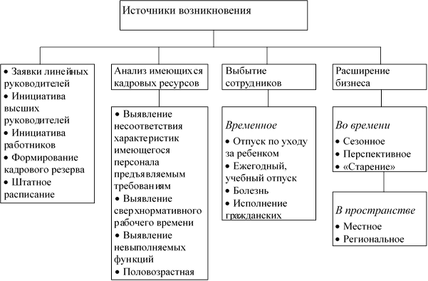 Потребность в персонале определяется на основе анализа источников возникновения вакантных рабочих мест в организации (рис. 2).