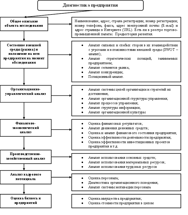 Диагностика деятельности предприятия включает ряд основных направлений: