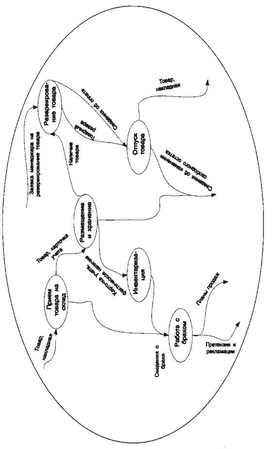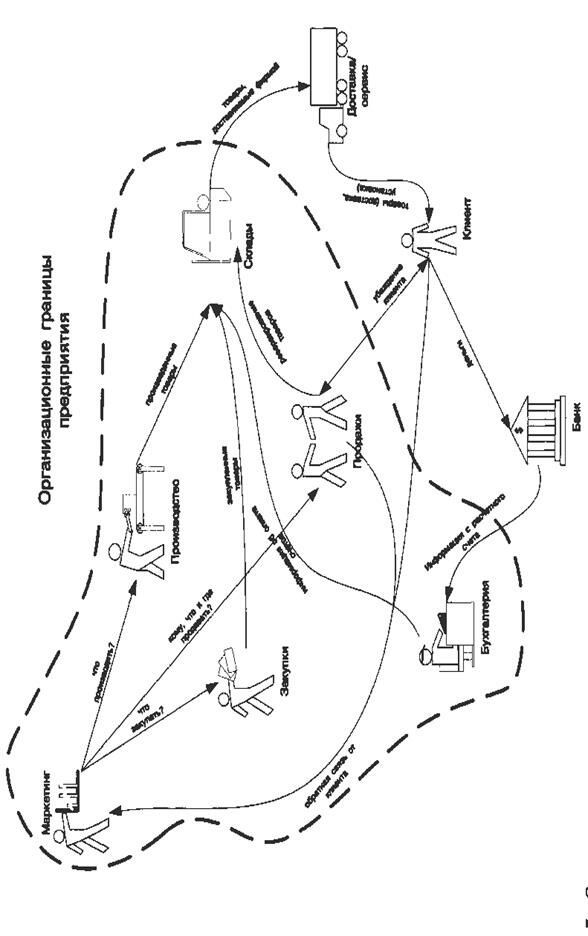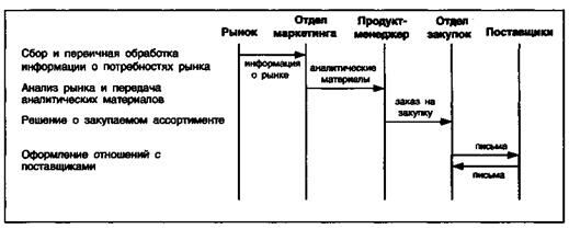 Рис. 7.14. Упрощенная диаграмма взаимодействия отделов торговой организации в ходе реализации процесса закупок