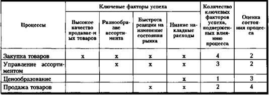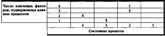 Целостный подход. Важность каждого процесса определяется по количеству целей или ключевых факторов успеха, на достижение которых он влияет. Затем оценивается в пятибалльной системе состояние процесса, то есть насколько хорошо/плохо процесс функционирует. Пример такой оценки приведен в таблице 7.5.