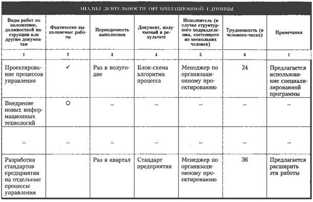 | Анализ организационной структуры управления | Исследование существующих организационно-структурных единиц и их взаимосвязей | Организационная и другая документация, наблюдения, интервью, анкетирование |