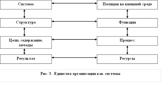 Единство организации как системы состоит, прежде всего, в ее предназначении, в котором элементам ее формирующим отведено определенное место и все они обеспечивают ее предназначение, ее функции (см. рис.1.4).