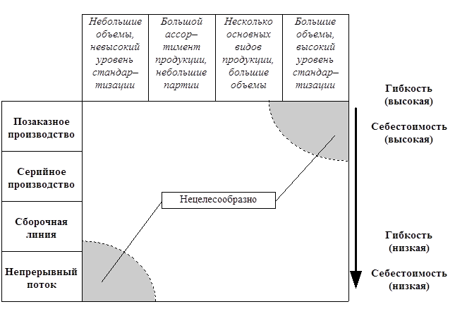 Основная задача производственной стратегии – сочетание гибкости предприятия со стоимостными преимуществами крупномасштабного производства.