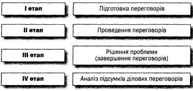 I этап - подготовка деловых переговоров. Успех переговоров полностью зависит от того, насколько хорошо к ним подготовиться. К началу переговоров необходимо иметь разработанную их модель, в частности: