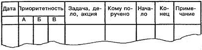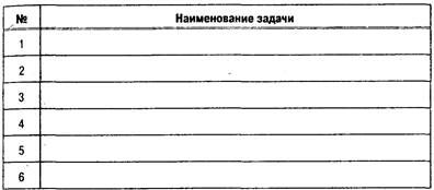 1. Составьте список всех предстоящих в соответствующем периоде времени (декада, день и т. д.) задач, для чего можно использовать схему, рекомендованную в разделе «план дня», или нижеследующий формуляр.