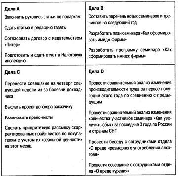 Обратите внимание также на то, что задачи категории В не являются в принципе ненужными, излишними. Речь идет о том, что наряду с задачами А и Б существует множество предварительных работ, побочных задач и рутинных дел, которые также должны быть выполнены.