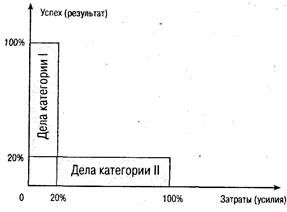 — Менее важные и несущественные задачи (категория В) составляют, напротив, 65 % общего числа задач, но имеют незначительную долю —порядка 15 % в общей «стоимости- всех дел, которые должен выполнить менеджер.