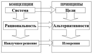 Суть концепции рациональных решений (с it. ratio – разум) состоит в том, что решающим аргументом принятия решения, т.е. при сознательном выборе наилучшего варианта среди других, служит логически непротиворечивая, полная, лучше всего, количественно подтвержденная система доказательств. Как логическое следствие понимания разумности делается вывод о том, что никогда не следует принимать, но никогда не следует отвергать вариант решения, если он является единственным при выборе. Нужно обязательно поискать другие варианты, выработав другие альтернативы для решения проблемы, чтобы на основании рационального их сравнения выбрать действительно наиболее предпочтительное разрешение проблемы. Подобная рациональная идея которой следует руководствоваться при выработке решений, получила название принципа множественности альтернатив.