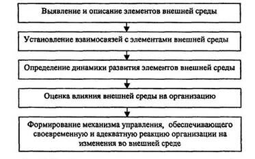 Исследование влияния внешней среды на проектирование организации должно осуществляться в последовательности, отображенной на рис. 7.1.