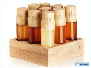 Стеклянные пробирки уверенно перебрались из научных лабораторий в обширный мир дизайна упаковки! Американский бренд Bee-Raw, занимающийся выпуском натурального высококачественного меда, предложил своим покупателям продукт в оригинальной таре. Ароматный букет из девяти видов отборного меда, помещенный в "соты" из натуральной древесины - отличное решение для тех, кто еще не определился со своими вкусовыми пристрастиями! Индивидуальная пробка снабжена всей необходимой информацией о продукте.