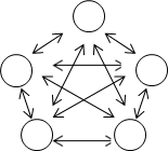 Работа консультанта с группой. В этом случае консультант предлагает всем участникам этой работы задавать вопросы только ему. Он находится как бы в центре группы (см. рис. 21) и берет инициативу на себя. Этот метод применяется особенно в тех случаях, когда отводится мало времени на поиск решения или когда в группе велика конфликтность. Контактов внутри группы лучше не допускать. Подобная ситуация позволяет членам группы не реагировать на выступление коллег и свои высказывания адресовать только консультанту.