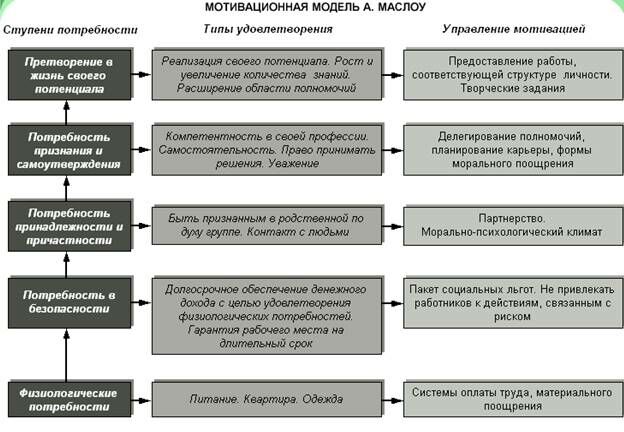 | Потребности | Краткая характеристика | Управление мотивацией |