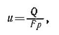 Скорость фильтрации не является действительной скоростью движения воды в порах породы, она представляет фиктивную (приведенную) скорость движения воды. Площадь поперечного сечения потока F в формуле принята равной площади поперечного сечения породы, тогда как в действительности вода передвигается в породе только по порам и площадь сечения потока равна общей площади пор. Чтобы получить действительную скорость движения вод в порах грунта и, надо расход воды Q разделить на площадь, занятую порами, т. е.