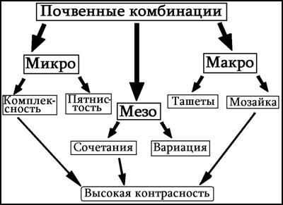 Мезокоибинации - Представлены сочетаниями (высококонтрастные почвенные комбинации) ивариации.