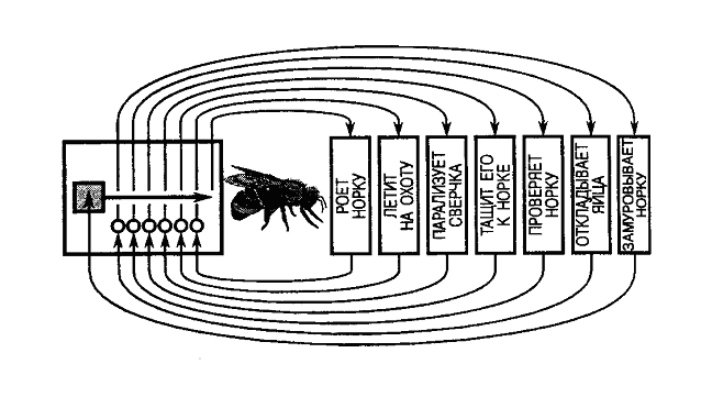 Рисунок 7. Пример последовательности процессов в инстинктивном поведении: только окончание одного процесса может служить стимулом для начала последующего