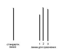 В качестве участника вы прибываете на место проведения эксперимента в указанное время и занимаете место в конце ряда, на котором уже разместилось пять человек. Экспериментатор спрашивает, какая из трех сравнительных прямых линий идентична образцу.