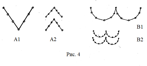 На рисунке 1 показаны параметры простейших зигзаг-строчек: а) – двухукольного зигзага и б) – четырёхукольного – для усиленного стачивания, где