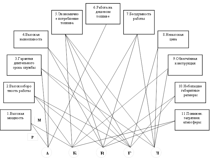 При этом определяются количественные оценки основных достоинств той или иной марки двигателей путем «взвешивания» каждого из них по балльной системе в следующем порядке: