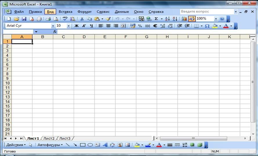 Рис. 2. Вид окна программы Excel 200Изменение масштаба7