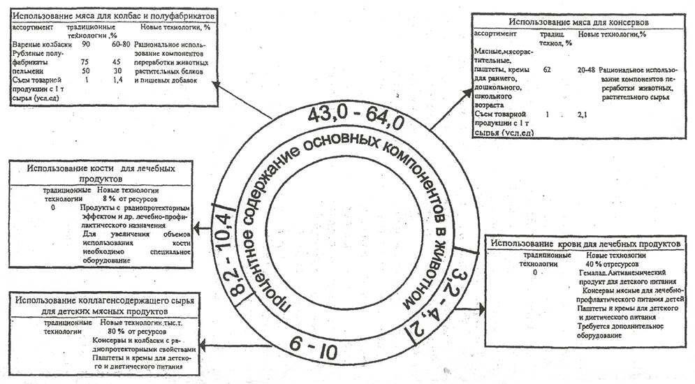 Ресурсосберегающая переработка экологически чистого скота для продуктов детского питания различного ассортимента, изготовленных по традиционной технологии и технологиям нового поколения, наглядно показана на схеме 1.