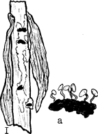 | Белая гниль подсолнечника: 1-поражение стебля; а- прорастание склероция |